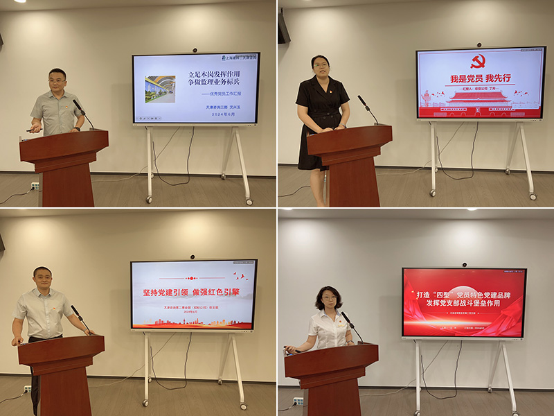 先進(jìn)基層黨組織天津咨詢第二事業(yè)部(招標(biāo)公司)黨支部書記于浩鵬、泛亞咨詢黨總支第二黨支部書記王然,優(yōu)秀共產(chǎn)黨員代表第一事業(yè)部(宏亞公司)丁月、第三事業(yè)部(成套監(jiān)理公司)艾興玉分別作典型交流發(fā)言。