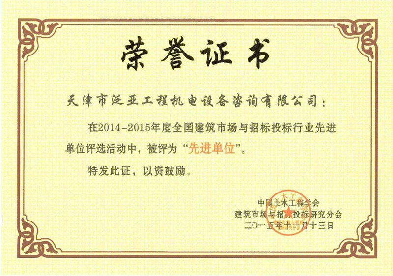 2014-2015年度建筑市場與招投標(biāo)行業(yè)先進(jìn)單位